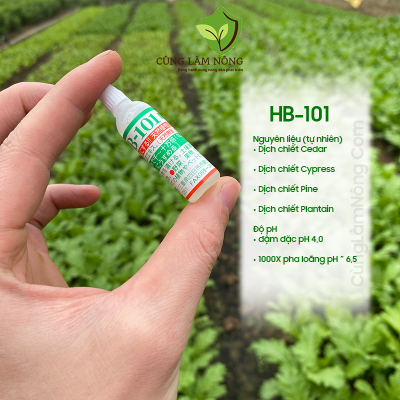 - Mô tả sản phẩm : HB-101 không phải là phân bón hay hóa chất nông nghiệp, mà là một dung dịch tự nhiên giúp tăng cường sức khỏe và khả năng sinh trưởng của cây. Đây là một chất vitalizer thực vật được chiết xuất từ thông, tùng, bách và mã đề.